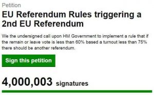 David Cameron has advised the nation to move on after a petition was called for a second Referendum. The argument is that the results are not valid if the vote is less than 60% based on a turnout under 75%.